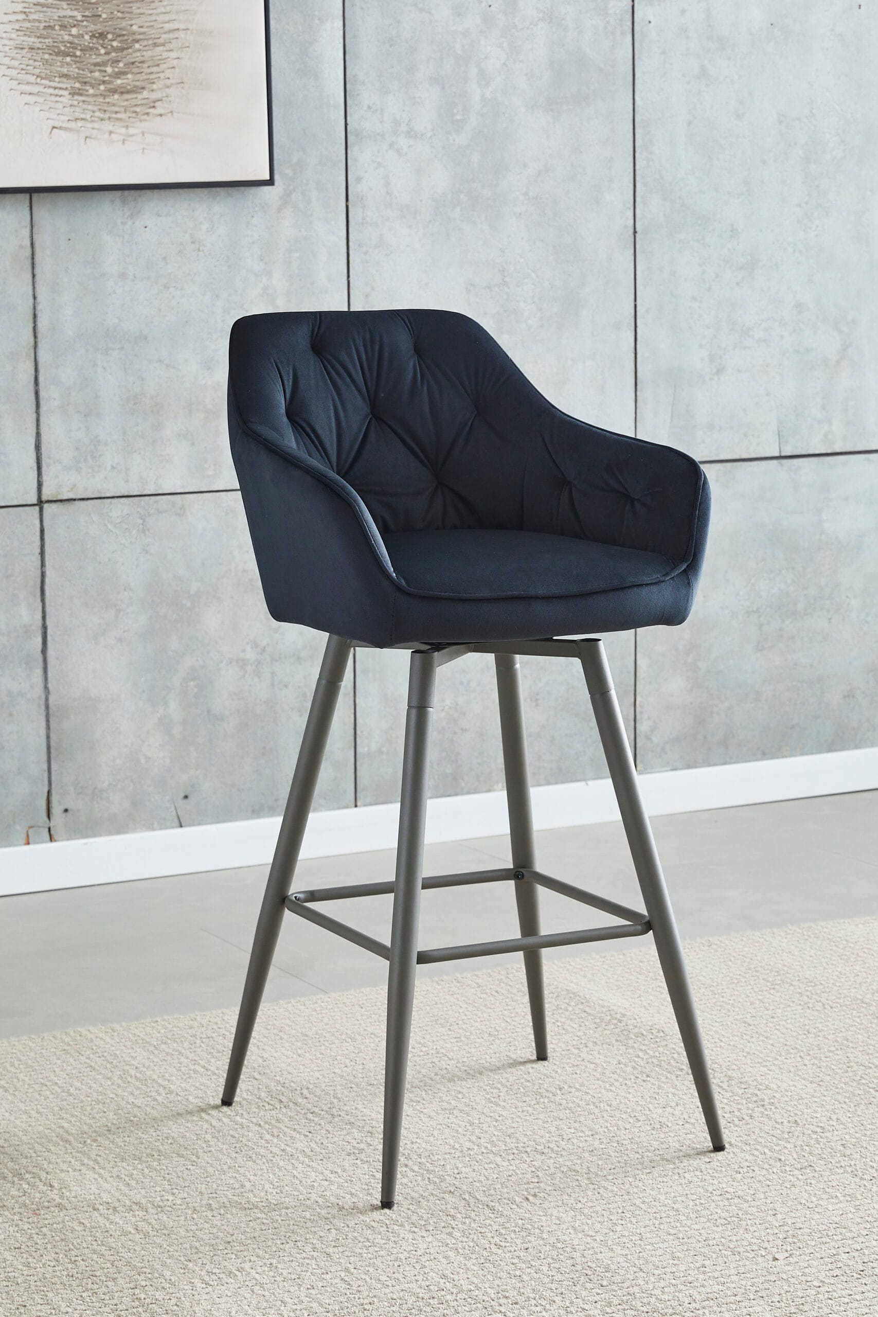 Ova moderna barska stolica sa crnim sjedištem i opcijom rotacije savršen je spoj stila, funkcionalnosti i udobnosti. Tapacirano sjedište u elegantnoj crnoj boji pruža prijatan osjećaj i lako se uklapa u svaki enterijer, dok praktičan mehanizam rotacije omogućava potpunu slobodu kretanja i dodatnu udobnost.